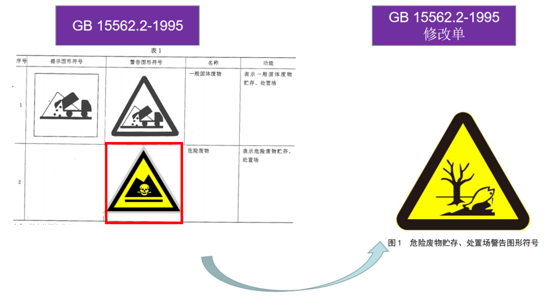 Ò»¡¢Î£ÏÕ·ÏÎï´¢´æ¡¢ÀûÓúʹ¦Öó¡Ëùʶ±ð±êÖ¾Éú̬»·¾³²¿¡¶»·¾³±£»¤Í¼ÐαêÖ¾---¹ÌÌå·ÏÎïÖü´æ£¨´¦ÖÃ)³¡¡·£¨GB15562.2-1995)Ð޸ĵ¥½«Î£ÏÕ·ÏÎï´¢´æ£¨´¦Ö㩳¡µÄÈý½ÇÐÎ÷¼÷ñêÖ¾£¨ÒÔÈËÌ彡¿µÎªÌØÕ÷£©¸Ä³ÉÁ˹ú¼ÊͨÓõÄΣº¦Ë®Éú»·¾³±êÖ¾£¬¸üÄÜÌåÏÖÆäÊÊÓÃÐÔ¡£Ð޸ı仯Çé¿öÈçÏÂͼAËùʾ¡£