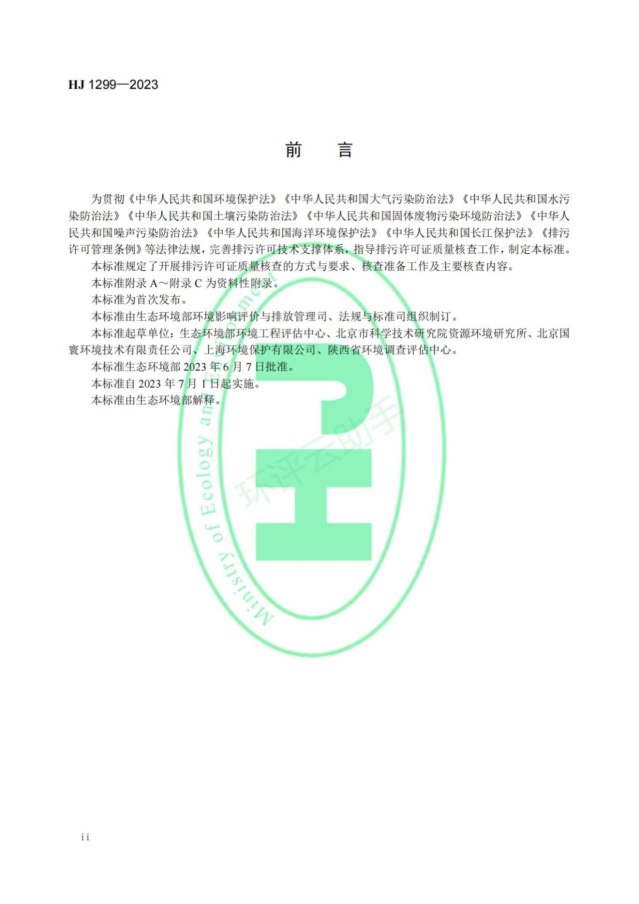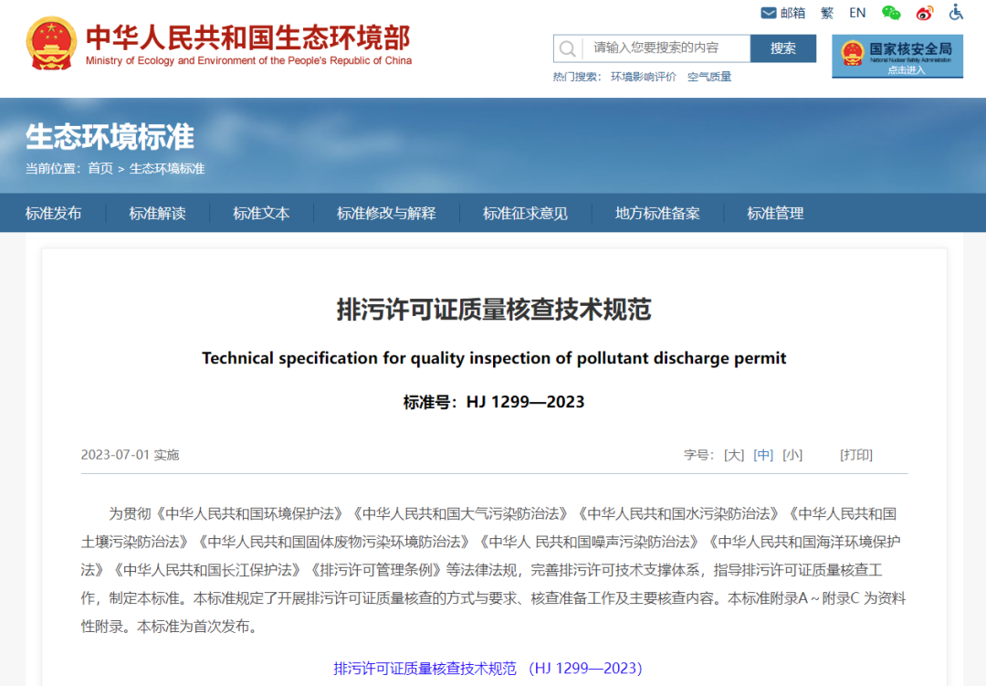 ¹ØÓÚ·¢²¼¹ú¼ÒÉú̬»·¾³±ê×¼¡¶ÅÅÎÛÐí¿ÉÖ¤ÖÊÁ¿ºË²é¼¼Êõ¹æ·¶¡·µÄ¹«¸æ Ϊ¹á³¹¡¶ÖлªÈËÃñ¹²ºÍ¹ú»·¾³±£»¤·¨¡·¡¶ÖлªÈËÃñ¹²ºÍ¹ú´óÆøÎÛȾ·ÀÖη¨¡·¡¶ÖлªÈËÃñ¹²ºÍ¹úË®ÎÛȾ·ÀÖη¨¡·¡¶ÖлªÈËÃñ¹²ºÍ¹úÍÁÈÀÎÛȾ·ÀÖη¨¡·¡¶ÖлªÈËÃñ¹²ºÍ¹ú¹ÌÌå·ÏÎïÎÛȾ»·¾³·ÀÖη¨¡·¡¶ÖлªÈËÃñ¹²ºÍ¹úÔëÉùÎÛȾ·ÀÖη¨¡·¡¶ÖлªÈËÃñ¹²ºÍ¹úº£Ñó»·¾³±£»¤·¨¡·¡¶ÖлªÈËÃñ¹²ºÍ¹ú³¤½±£»¤·¨¡·¡¶ÅÅÎÛÐí¿É¹ÜÀíÌõÀý¡·µÈ·¨ÂÉ·¨¹æ£¬ÍêÉÆÅÅÎÛÐí¿É¼¼ÊõÖ§³ÅÌåϵ£¬Ö¸µ¼ÅÅÎÛÐí¿ÉÖ¤ÖÊÁ¿ºË²é¹¤×÷£¬ÏÖÅú×¼¡¶ÅÅÎÛÐí¿ÉÖ¤ÖÊÁ¿ºË²é¼¼Êõ¹æ·¶¡·Îª¹ú¼ÒÉú̬»·¾³±ê×¼£¬²¢Óè·¢²¼¡£ ±ê×¼Ãû³Æ¡¢±àºÅÈçÏ£º¡¶ÅÅÎÛÐí¿ÉÖ¤ÖÊÁ¿ºË²é¼¼Êõ¹æ·¶¡·£¨HJ1299-2023£©¡£ ¸Ã±ê×¼×Ô2023Äê7ÔÂ1ÈÕÆðʵʩ¡£ ±ê×¼ÄÚÈÝ¿ÉÔÚÉú̬»·¾³²¿ÍøÕ¾£¨http://www.mee.gov.cn£©²éѯ¡£ Éú̬»·¾³²¿2023Äê6ÔÂ7ÈÕ ³ËÍ£ºÉú̬»·¾³²¿»·¾³¹¤³ÌÆÀ¹ÀÖÐÐÄ£¬Öйú»·¾³¿ÆÑ§Ñо¿Ôº£¨Éú̬»·¾³²¿»·¾³±ê×¼Ñо¿Ëù£©¡£Éú̬»·¾³²¿°ì¹«Ìü2023Äê6ÔÂ8ÈÕÓ¡·¢